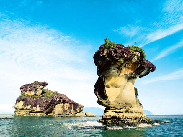 Pictured: Unique-shaped rock jutting out of the water in Bako National Park, Sarawak