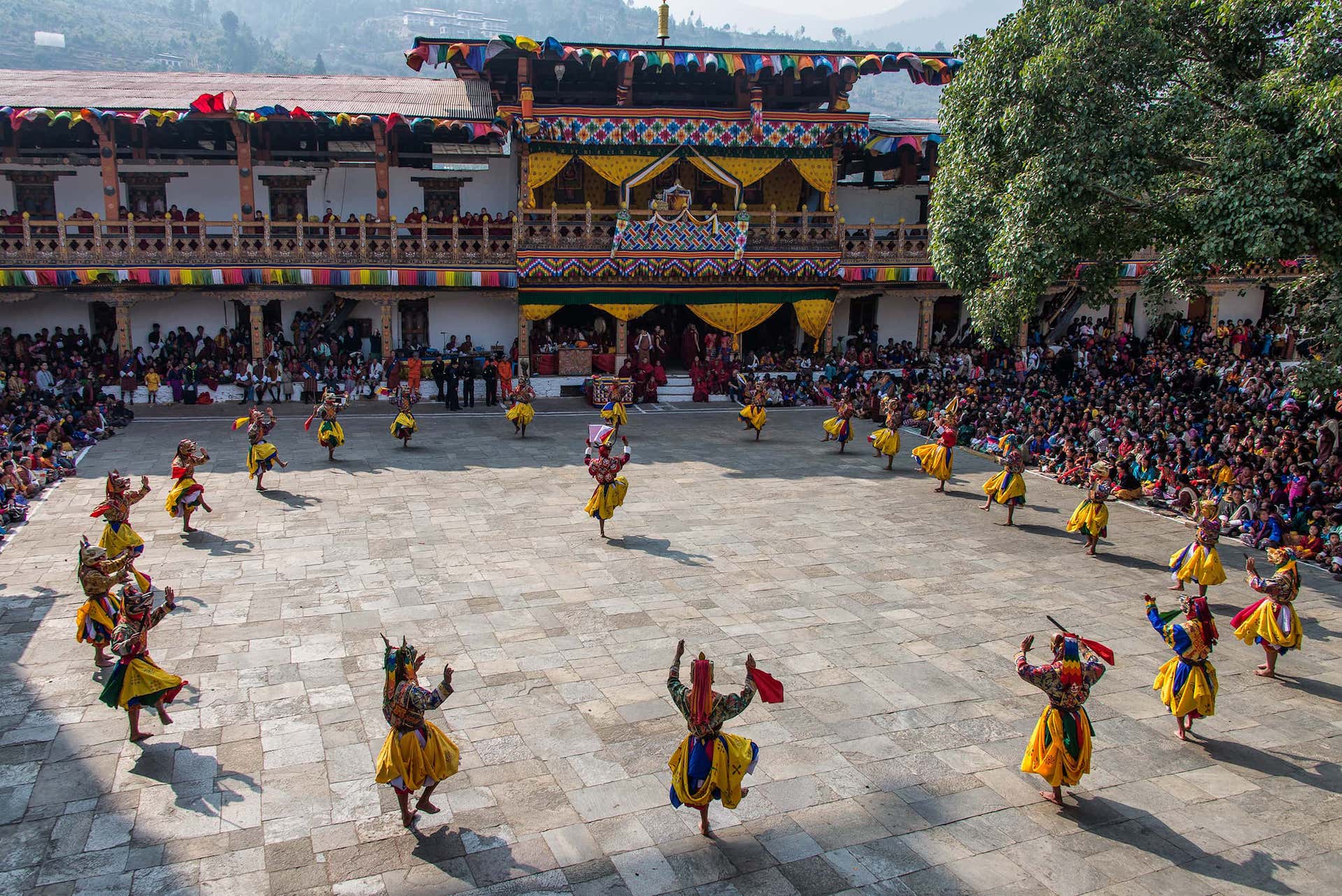 Today we join locals in celebrating at the annual Black Neck Crane Festival. The festival celebrations take place in the courtyard of Gantey Gompa and focus on celebrating the arrival of the Black Neck Cranes who make the Phobjika Valley there home during the winter months. The festival centres around cultural dances and songs, often containing reference to the birds, and makes use of Bhutans traditional carved wooden masks. There is a large focus on conservation of the area and the cranes habitat during the festival.
